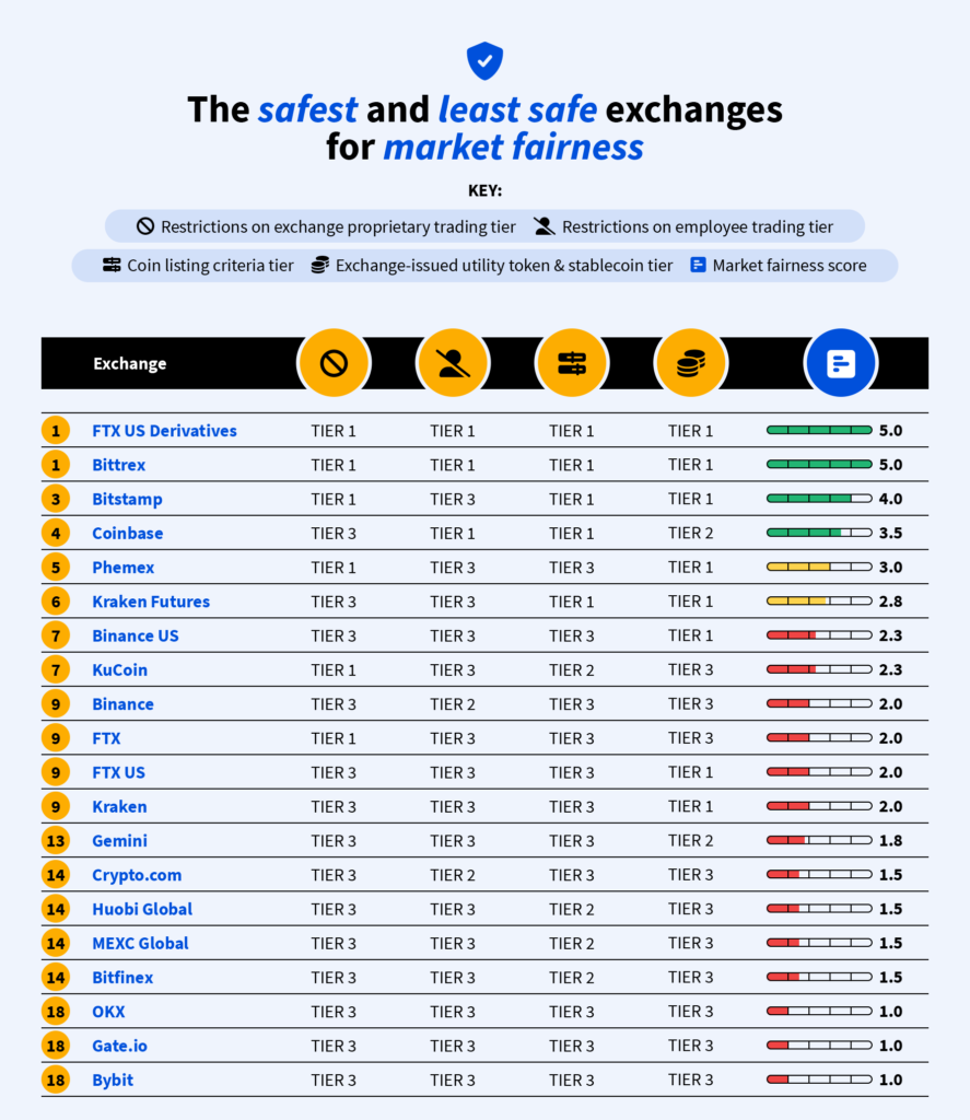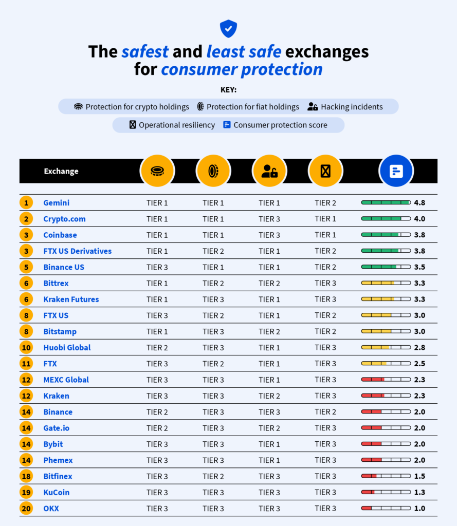 Coinbase was ranked as a tier 1 exchange for the majority of sub-categories and is well known for its robust security features.
